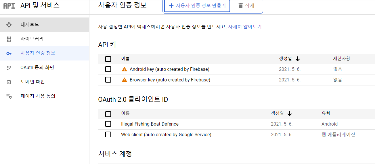 OAuth2.0클라이언트 ID에 Web client 가 생성되어 있어야 함.