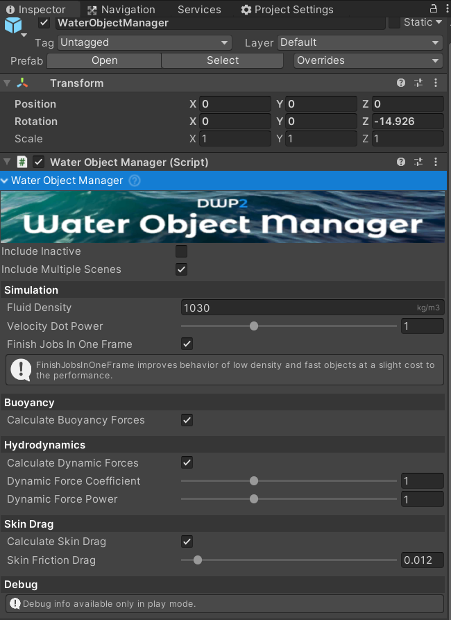 Quick Start This quick start guide will explain how to set up a primitive sphere to interact with water. An empty scene will be used for the example. Initial Project Setup Project Settings > Player > Api Combatibility Level needs to be set to .NET 4.x. Ass