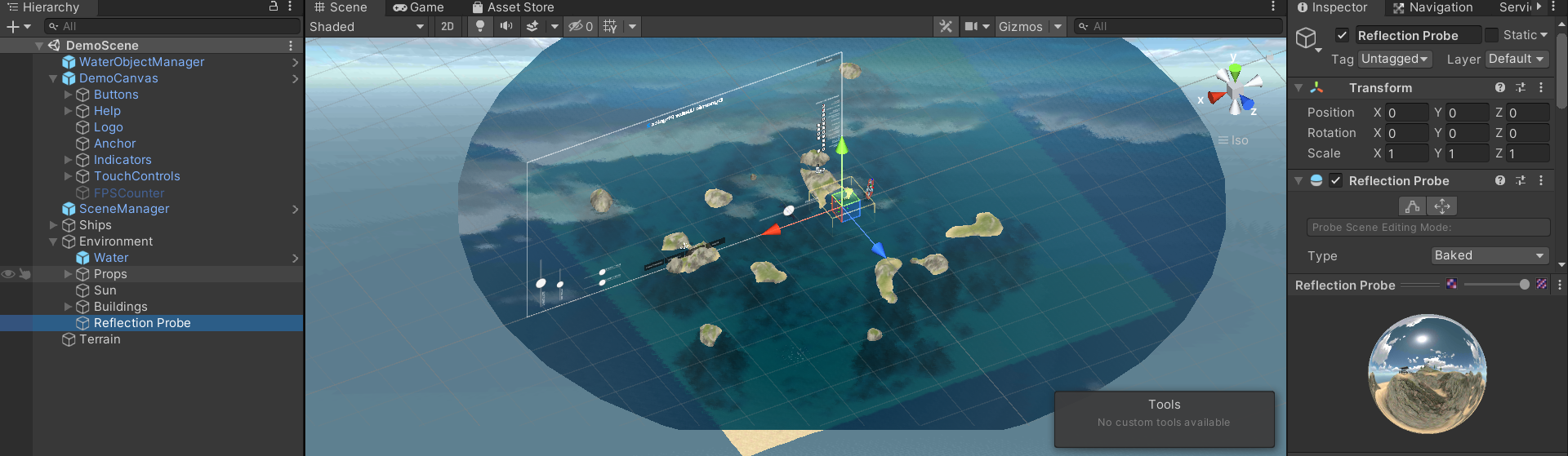 캡처된 이미지는 Cubemap로 저장되어, 반사 재질을 가지는 객체에서 사용할 수 있습니다.