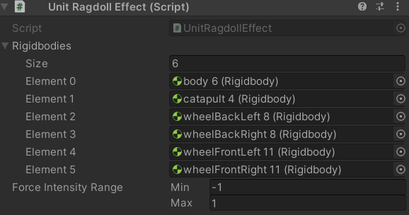 유닛에 들어있는 Unit Ragdoll Effect