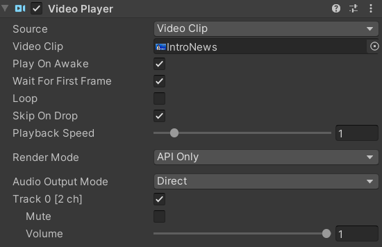 오디오와 마찬가지로 유니티에서 비디오를 재생하는 간단한 방법이 추가되었다. VideoPlayer가 그것인데 이것을 이용해 여러 비디오 파일을 플랫폼 독립적으로 재생할 수 있다. VideoPlayer를 사용하