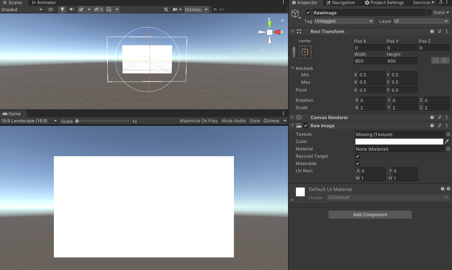 2. RawImage를 하나 만듦