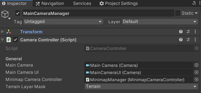 SelectionManager에서 설정을 받아서 MainCameraManager에서 구현