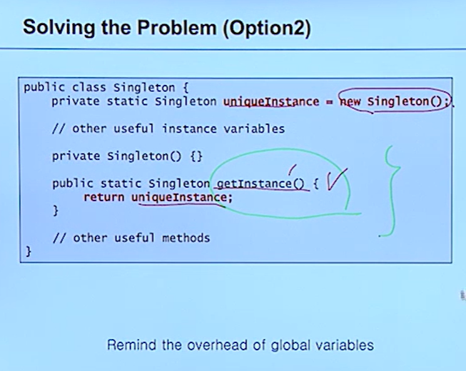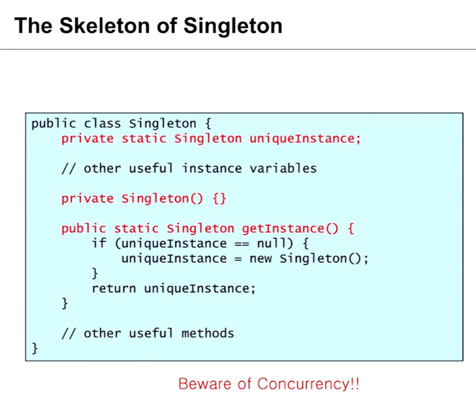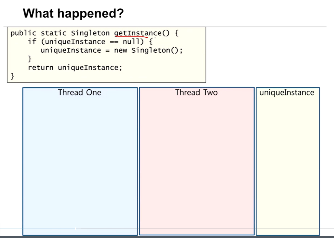 new Singleton()생성되는 도중에 (uniqueInstance == null)
