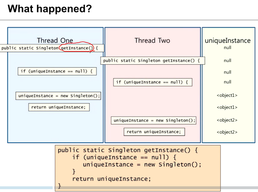 if문 뚫고 return uniqueInstance 받아가버림. -> ㅈ망