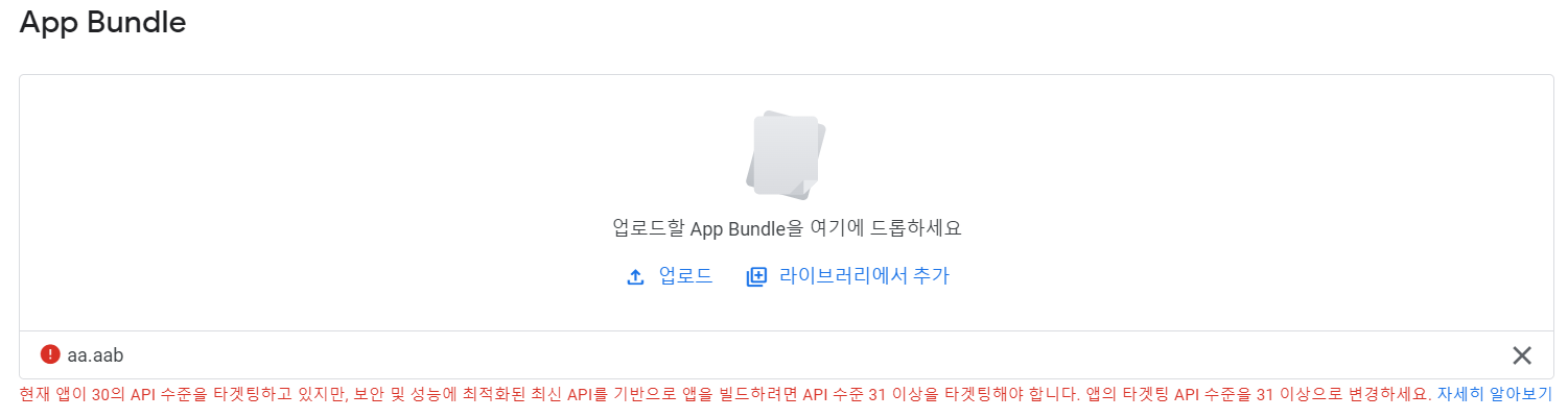 + Google Store 등록 시 31 버전 이상을 Target해야 업로드 할 수 있음