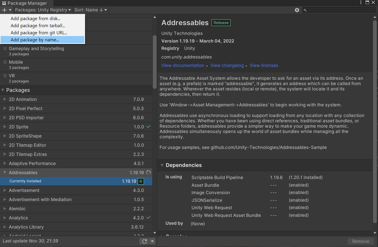 다른 버전의 Package들이 Package Manager에 나타나지 않는 경우,