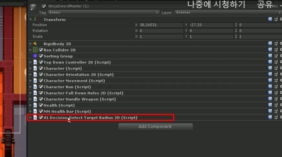 이 Deicision들을 이용해 Decision Tree를 만드는듯. AI Braion Component를 추가한다.