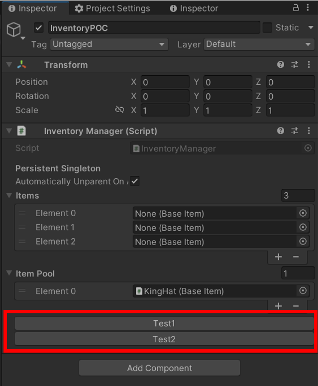 InventoryManager 컴포넌트에 버튼을 달고 싶은 경우,