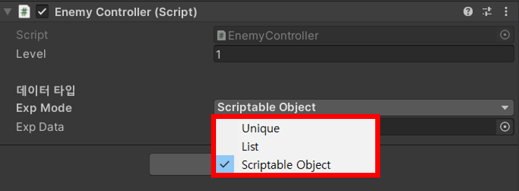 public enum ExpModes { Unique, List, ScriptableObject }