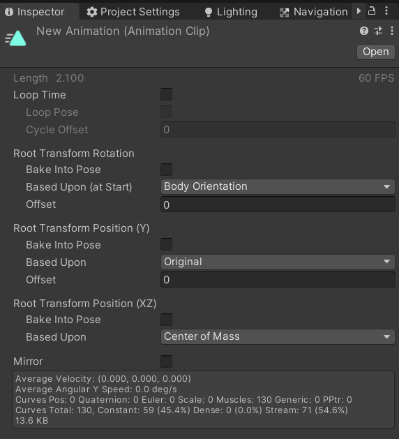 단 위 예제에서는 단일 애니매이션 재생만 가능하고, 이를 기존에 제작된 AnimationController에 넣으면 제대로 동작을 하지 않는다.