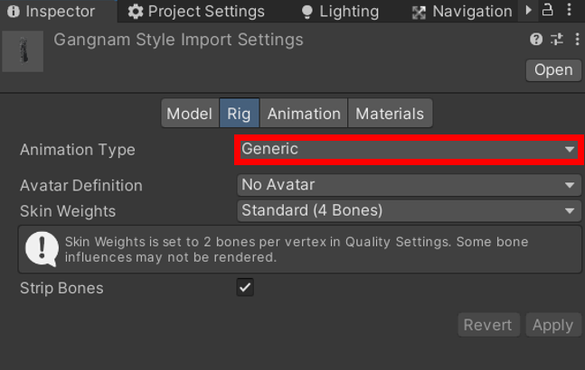 그리고 이 avatar와 연동되려면 Animation형태가 Generic이 아니라 Humonoid 이어야 한다.