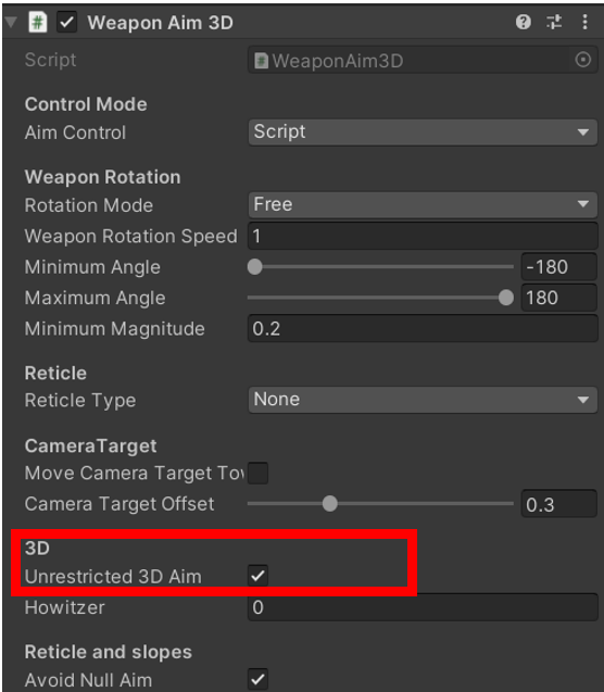 Weapon의 Unrestrict3DAim에서 이걸 쓸지 말지 선택함.