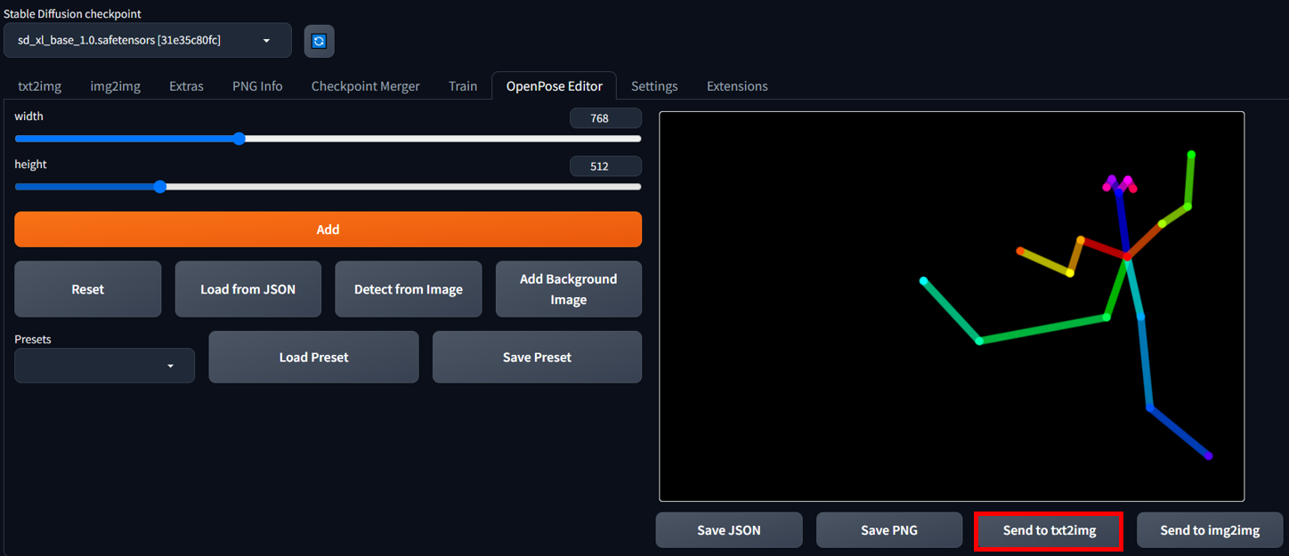 OpenPose Editor를 설치하면 포즈를 직접 수정할 수 있다