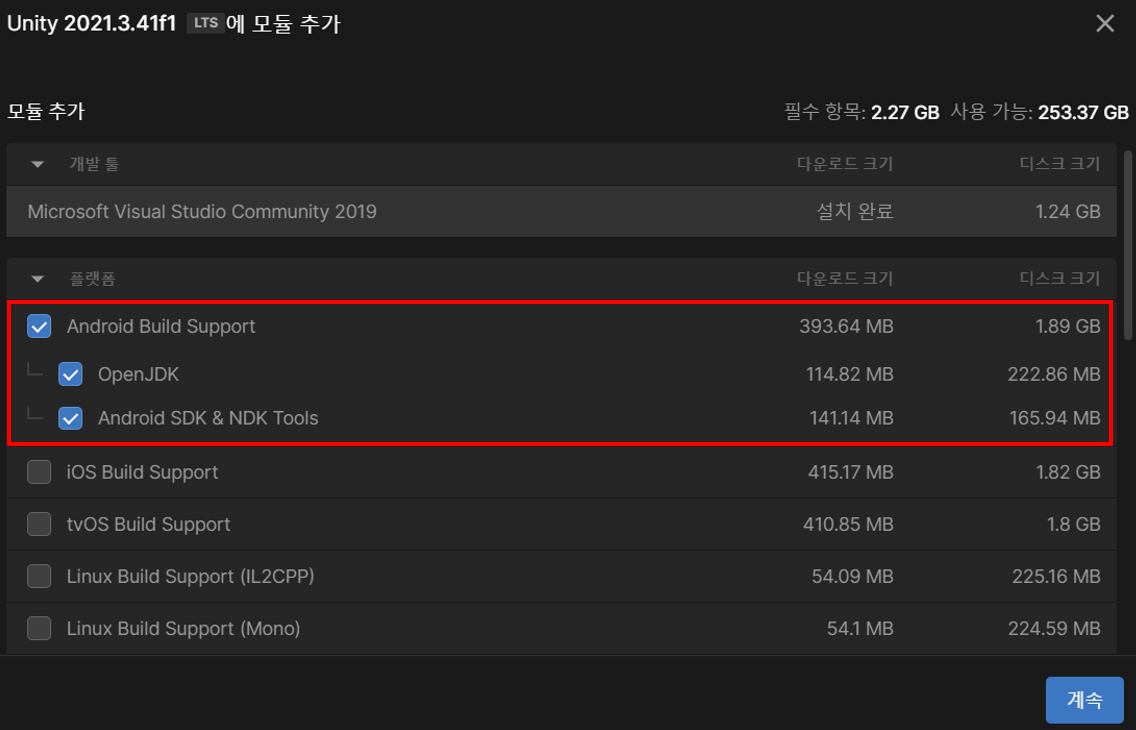 설치과정에서 일부 Android 구성요소가 제대로 설치되지 않음