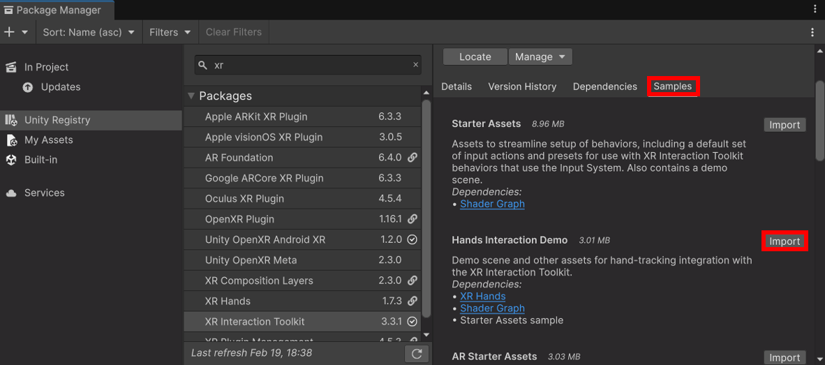 3. “XR Interaction Toolkit” 검색 및 설치
